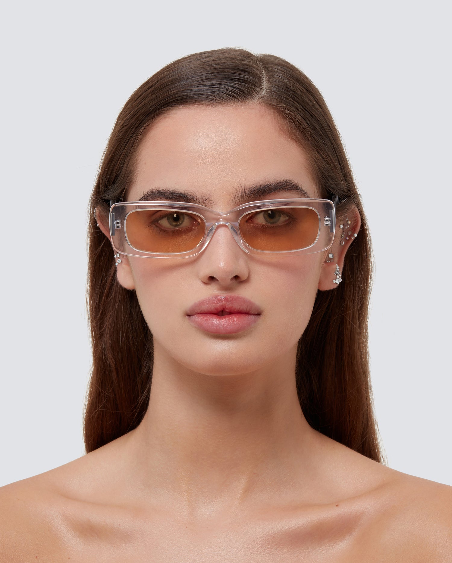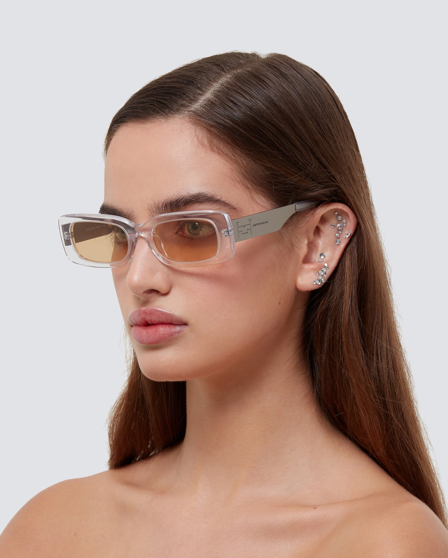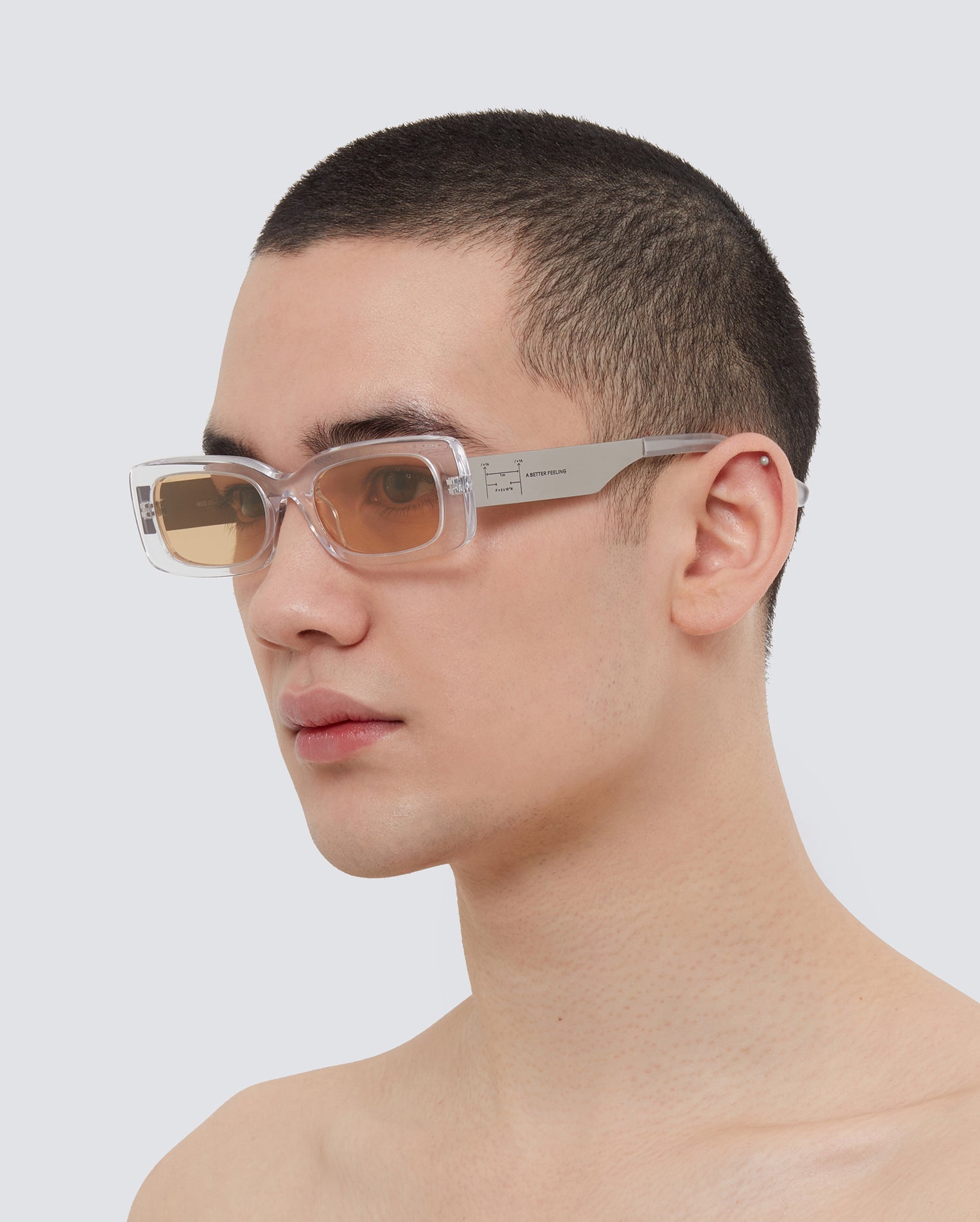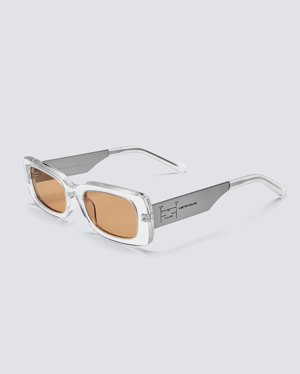 Brushed titanium, clear acetate, amber nylon lenses