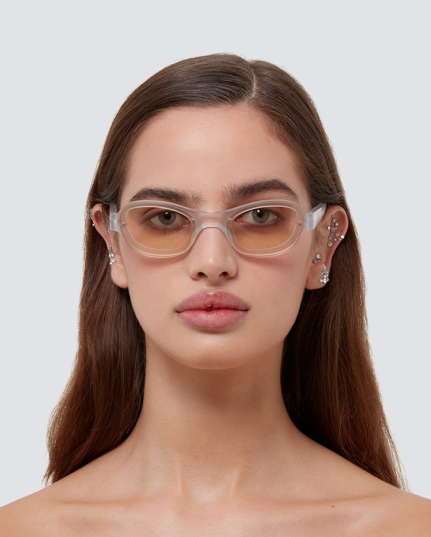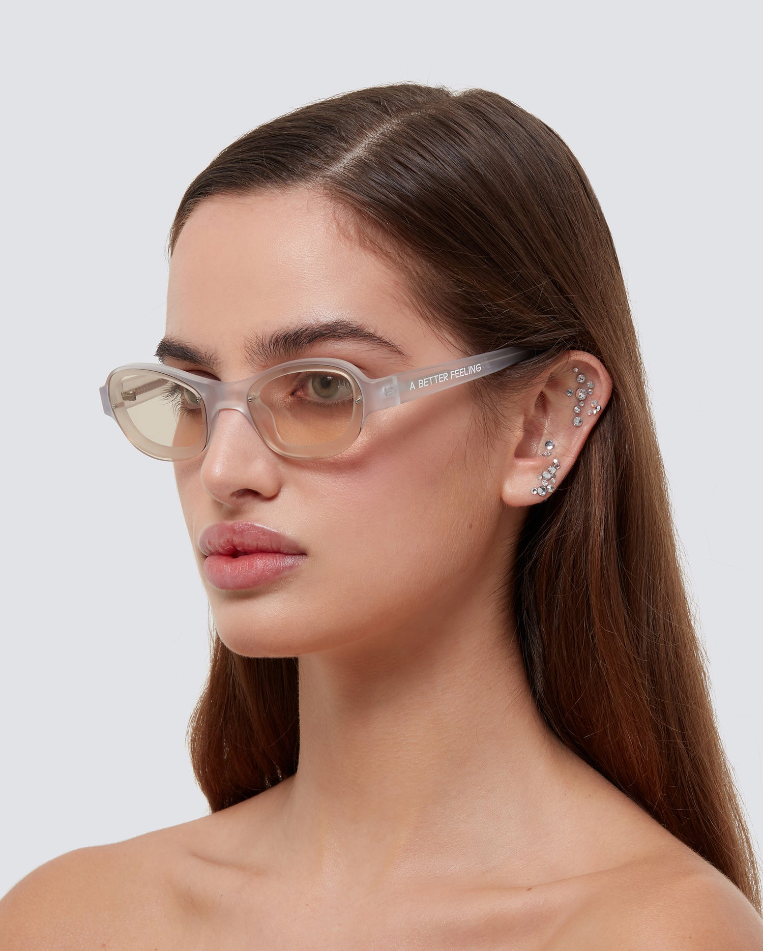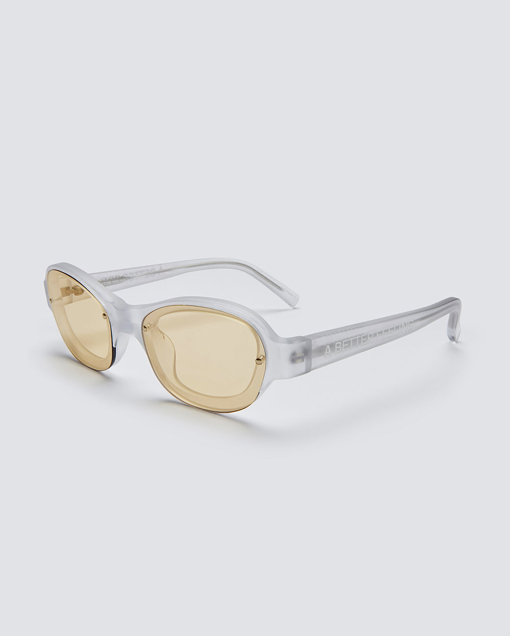 SKYE is an acetate frame with flush lenses embedded within the frame. Each lens is attached with two stainless steel screws for a minimal finish. The temples are laser-engraved with the A BETTER FEELING logo. Featuring lenses with 100% UV protection.